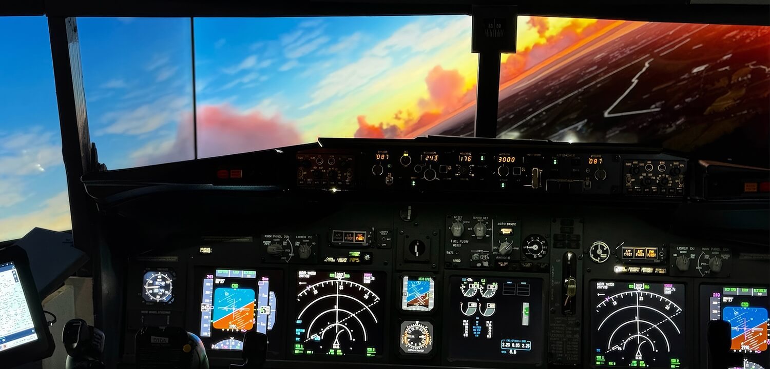 It’s 1:1 scale and every button, dial and switch of a Boeing flight deck has been meticulously replicated. This is a full-grade commercial system, complete with high-fidelity sound system and HD visuals too.