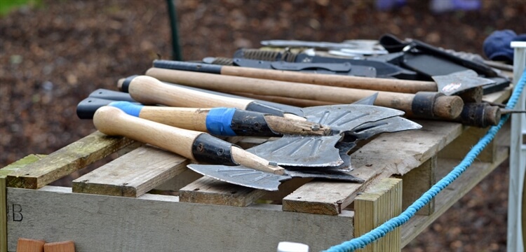 - 12 inch Ninja axes, tomahawks and bad axes are used