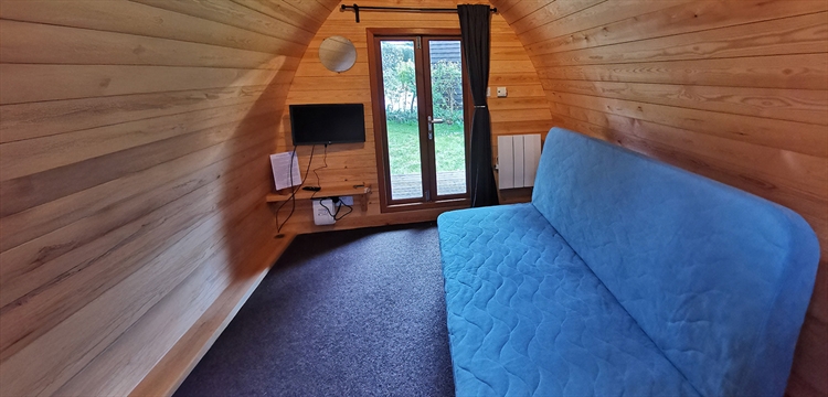 - The large pods have a double sofa bed, TV , heating, lights and an electric & USB socket
