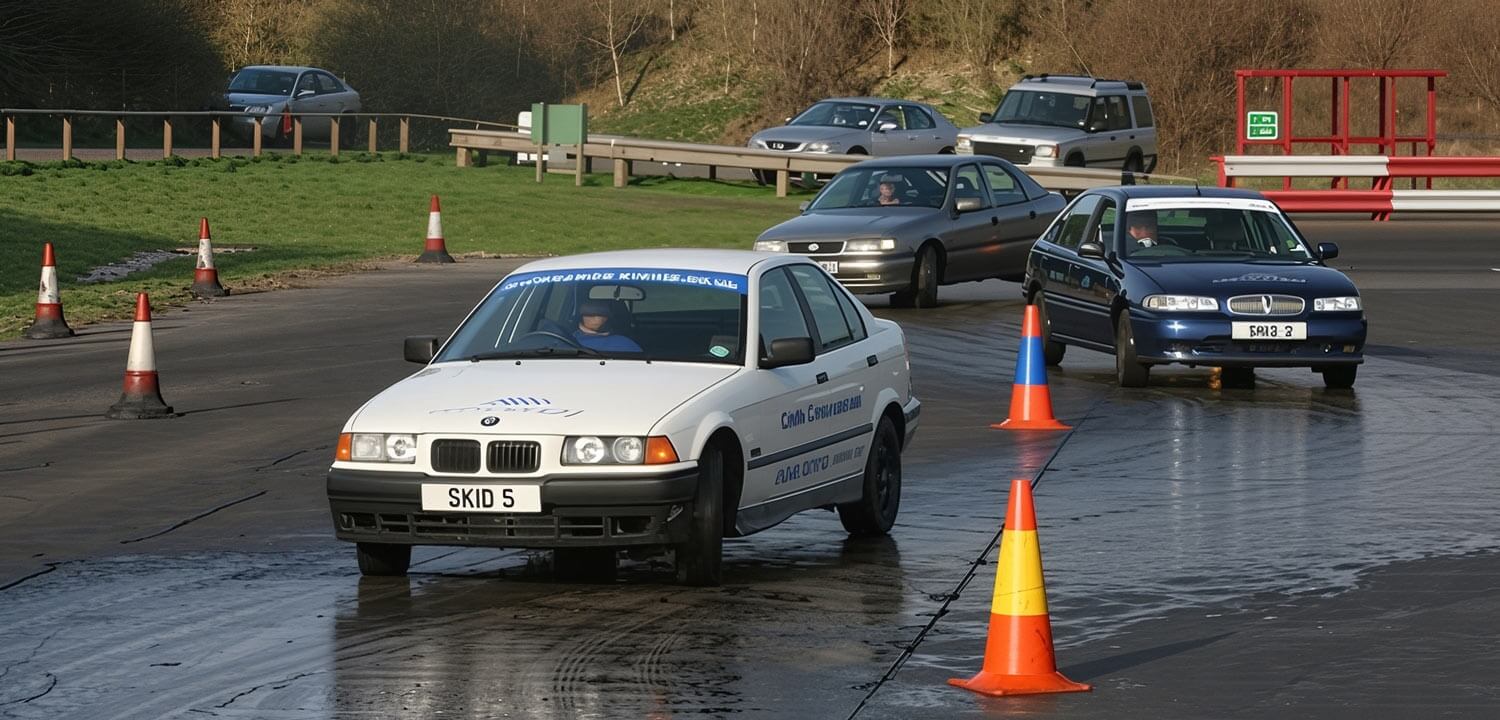 - Initial driving session on the skid pan (in both cars)