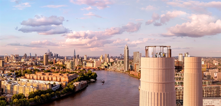The Chimney Lift - elevate your views of London! These packages for two include your Battersea Power Station Chimney Lift tickets and an invitation to a sparkling afternoon tea at the Clermont Hotel.