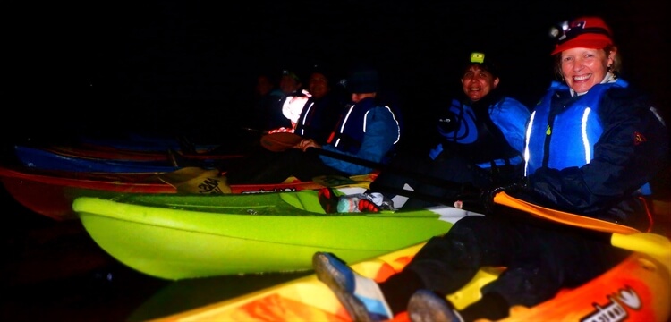 We should also point out that no previous experience is necessary for these night kayaking experiences. You'll meet just before sunset, giving you enough time to learn the basics of getting into the kayak, launching and paddling in a straight line. Then once night falls, you're off.