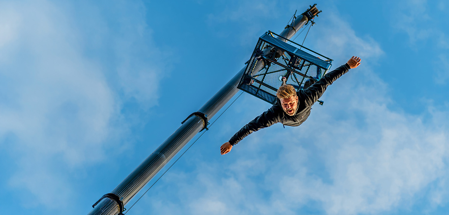 Your heart’s racing. You’re falling. Then you’ll soon feel the pressure on your harness and you know that the bungee cord has done its job. Suddenly, you’re heading back skywards on your first rebound and you’ll be flooded with an amazing sense of achievement - and euphoria.