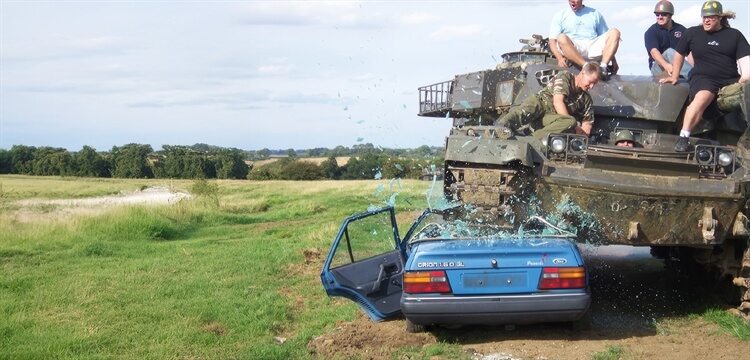 - Drivers are scored on their driving with the highest score driver having the opportunity to 'crush a car' in the Chieftain Tank!